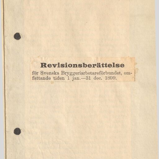Revisionsberättelse för Svenska Bryggeriarbetareförbundet, omfattande tiden 1 jan.-31 dec. 1889