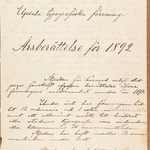 Typografförbundet avd 084/Uppsala Typografiska förening - annual report (1892)