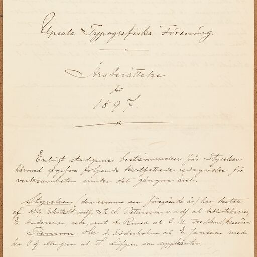 Typografförbundet avd 084/Uppsala Typografiska förening - annual report (1897)