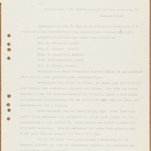 Järnvägsmannaförbundet avd 084 Uppsala - annual report (1928)
