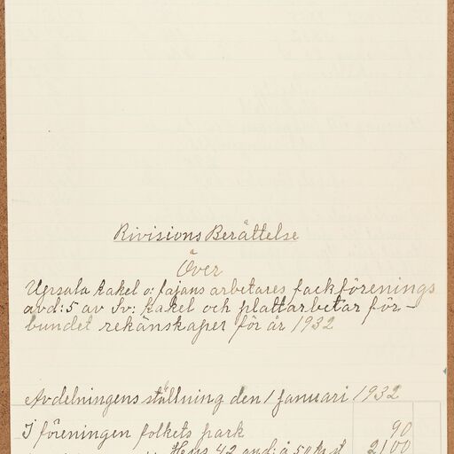 Fabriksarbetareförbundet avd 174 Uppsala - financial statement (1932)