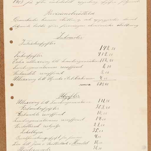 Gjutareförbundet avd 030 Uppsala - financial statement (1903)