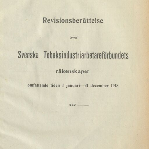 Revisionsberättelse över Svenska Tobaksarbetareförbundets räkenskaper omfattande 1 januari-31 december 1918
