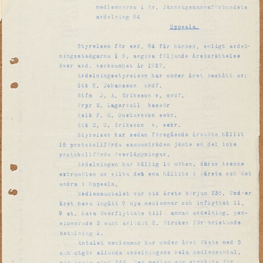 Järnvägsmannaförbundet avd 084 Uppsala - annual report (1927)