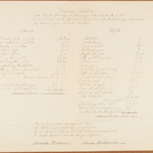 Kvinnliga Fackföreningen Uppsala - financial statement (1931)