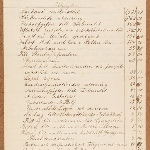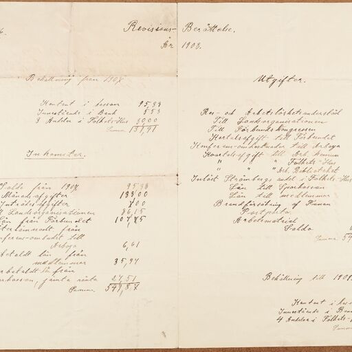 Gjutareförbundet avd 030 Uppsala - financial statement (1908)