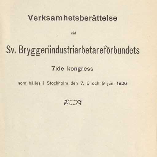 Verksamhetsberättelse vid Sv. Bryggeriarbetareförbundets 7:de kongress som hålles i Stockholm den 7, 8 och 9 juni 1926