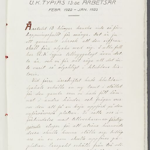 Typografförbundet avd 084/ Uppsala Typografiska förening ungdomsklubb Typia Uppsala - annual report (1922)