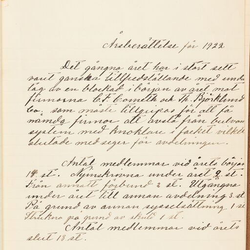 Gjutareförbundet avd 050 Enköping - annual report (1922)
