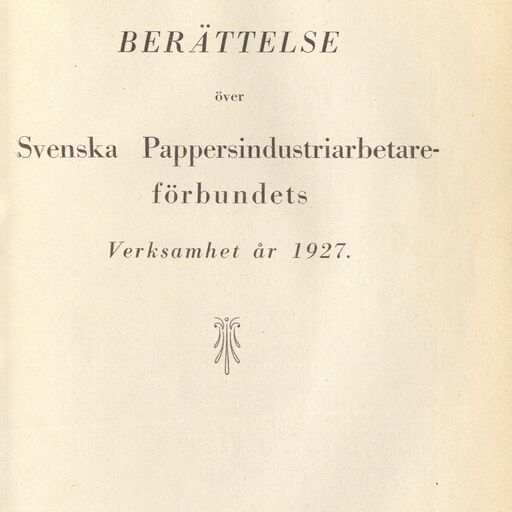 Berättelse över Sv. Pappersindustriarbetare-förbundets verksamhet år 1927