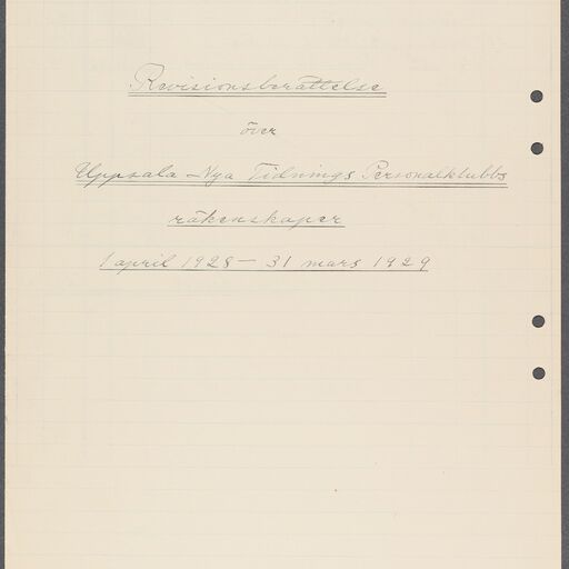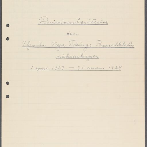 GS avd 9 Östra Svealand PGAB Uppsala Grafiska Personalklubb - financial statement (1928)