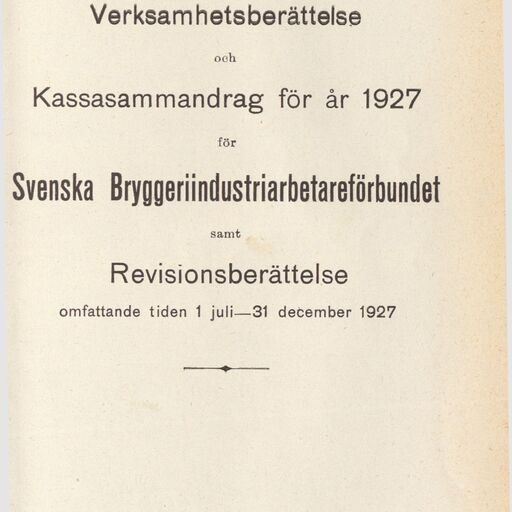 Verksamhetsberättelse och Kassasammandrag för år 1927 för Sv. Bryggeriindustriarbetareförbundet samt Revisionsberättelse omfattande tiden 1 juli-31 december 1927
