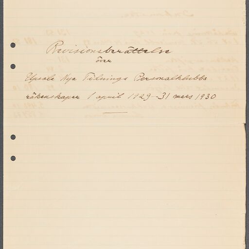 Verksamhets- o. Revisionsberättelse för Svenska Skortensfejeriarbetareförbundet åren 1928-1930