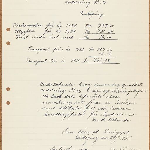 Elektrikerförbundet avd 035 Enköping - financial statement (1934)