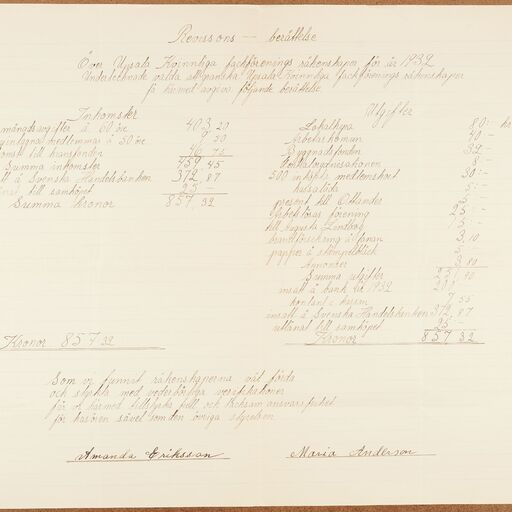 Kvinnliga Fackföreningen Uppsala - financial statement (1932)