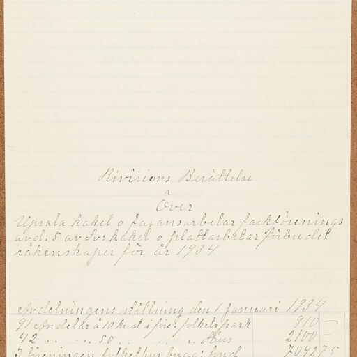 Fabriksarbetareförbundet avd 174 Uppsala - financial statement (1934)