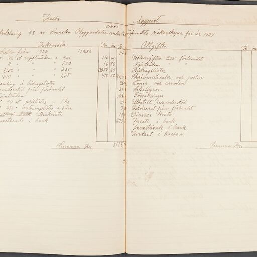 Byggnadsträarbetareförbundet avd 058 Enköping - financial statement (1934)