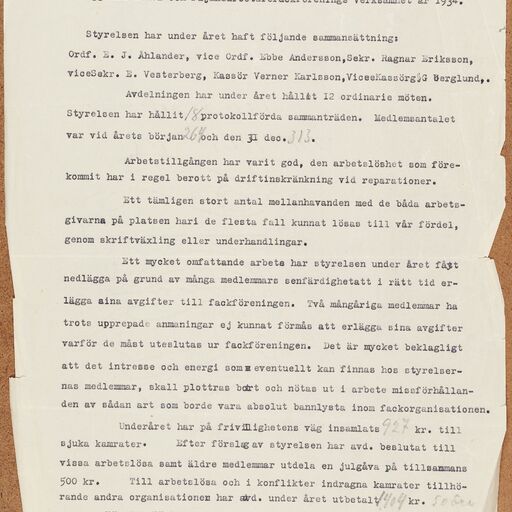 Byggnadsträarbetareförbundet avd 058 Enköping - annual report (1934)