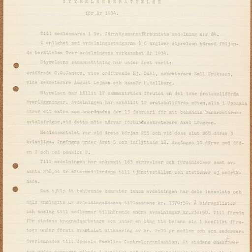 Järnvägsmannaförbundet avd 084 Uppsala - annual report (1934)