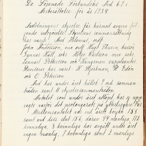 Förenade Förbunden avd 067 sektion Gahns Uppsala - annual report (1934)