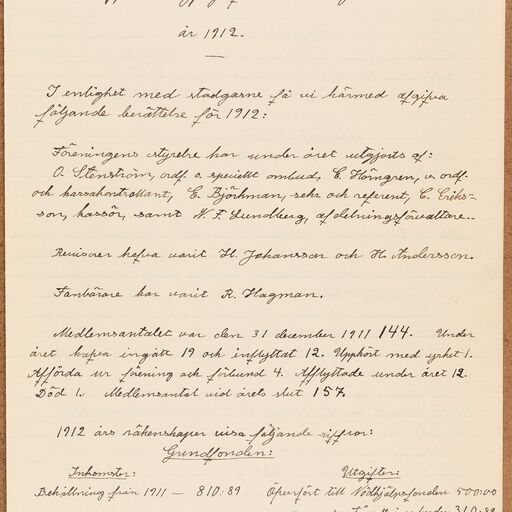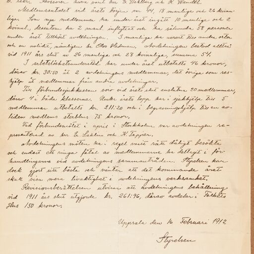 Gjutareförbundet avd 030 Uppsala - annual report (1911)