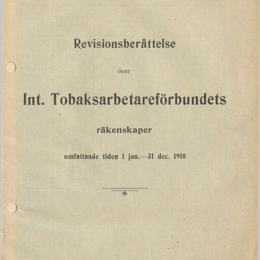 Revisionsberättelse över Int. Tobaksarbetareförbundets räkenskaper omfattande 1 jan.-1 dec. 1910