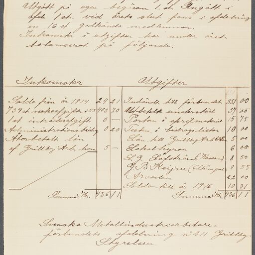 Metallindustriarbetareförbundet avd 211 Grillby - annual report (1915)