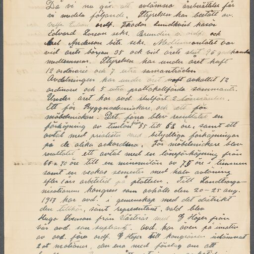 Träarbetareförbundet avd 126 Enköping - annual report (1917)