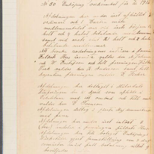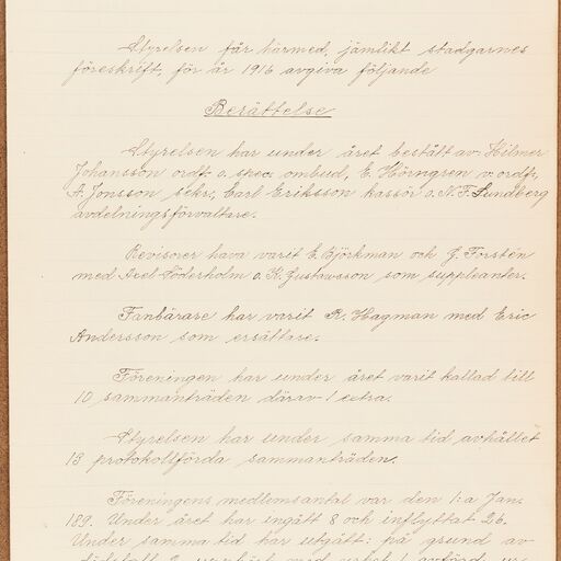 Gjutareförbundet avd 050 Enköping - annual report (1916)