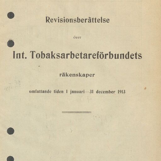 Revisionsberättelse över Int. Tobaksarbetareförbundets räkenskaper omfattande 1 januari-31 december 1913