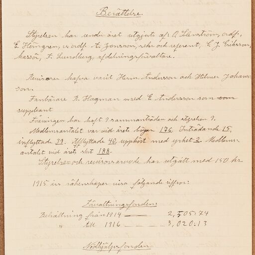 Revisionsberättelse över Sv. Skrädderiarbetareförbundets räkenskaper och förvaltning för tiden 1 jan.-31 dec. 1915