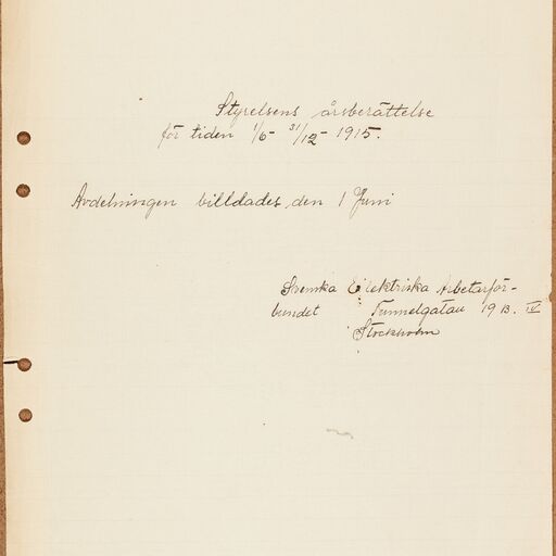 Elektrikerförbundet avd 035 Enköping - annual report (1915)