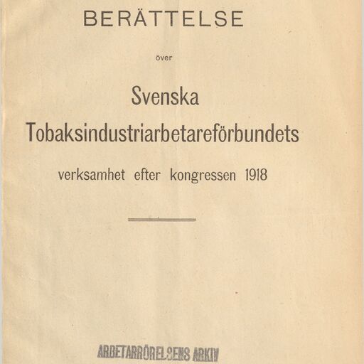 Berättelse över Svenska Tobaksindustriarbetareförbundets verksmhet efter kongressen 1918