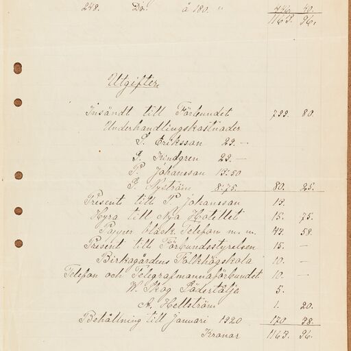 Elektrikerförbundet avd 035 Enköping - financial statement (1919)