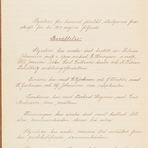 Gjutareförbundet avd 050 Enköping - annual report (1917)