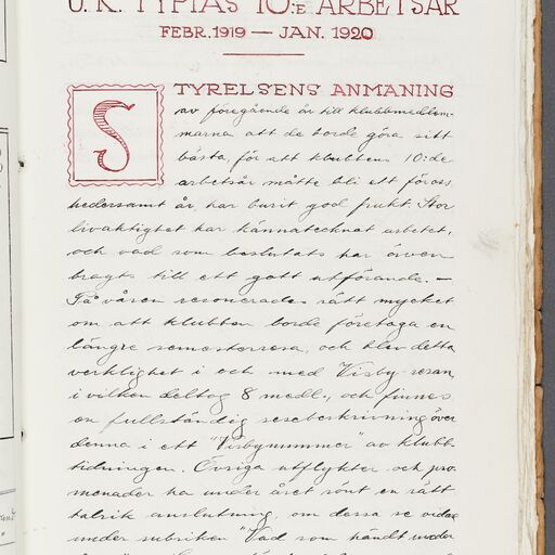 Typografförbundet avd 084/ Uppsala Typografiska förening ungdomsklubb Typia Uppsala - annual report (1919)