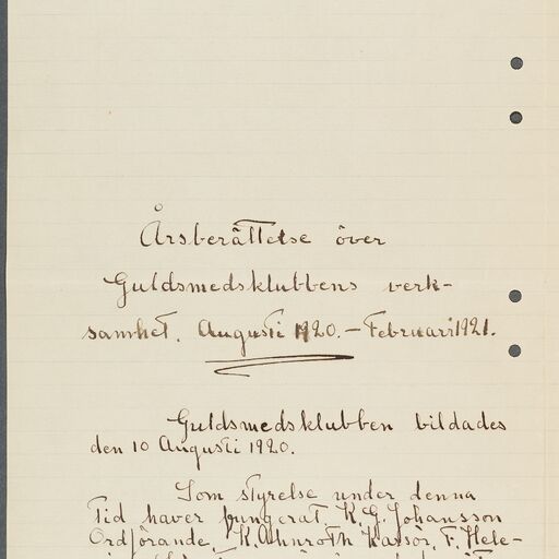 Metallindustriarbetareförbundet avd 050 klubb Guldsmeder Uppsala - annual report (1920)