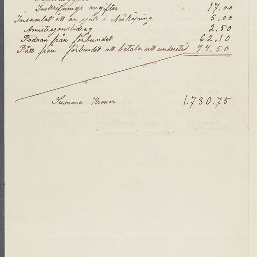 Kakelugnsmakareförbundet avd 042 Uppsala - financial statement (1920)