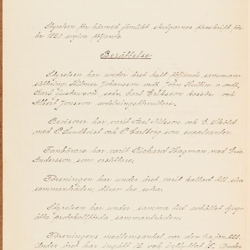 Träarbetareförbundet avd 126 Enköping - annual report (1920)