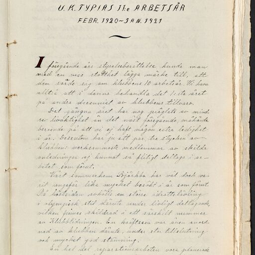 Typografförbundet avd 084/ Uppsala Typografiska förening ungdomsklubb Typia Uppsala - annual report (1920)