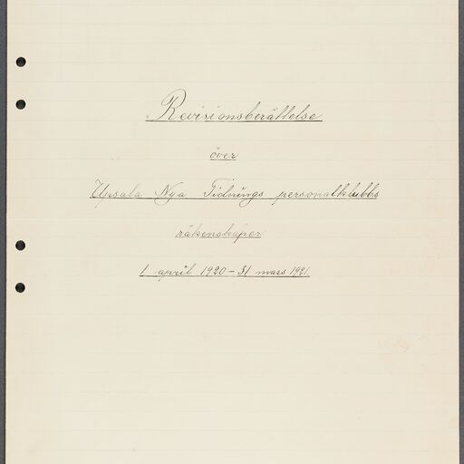 GS avd 9 Östra Svealand PGAB Uppsala Grafiska Personalklubb - financial statement (1920)