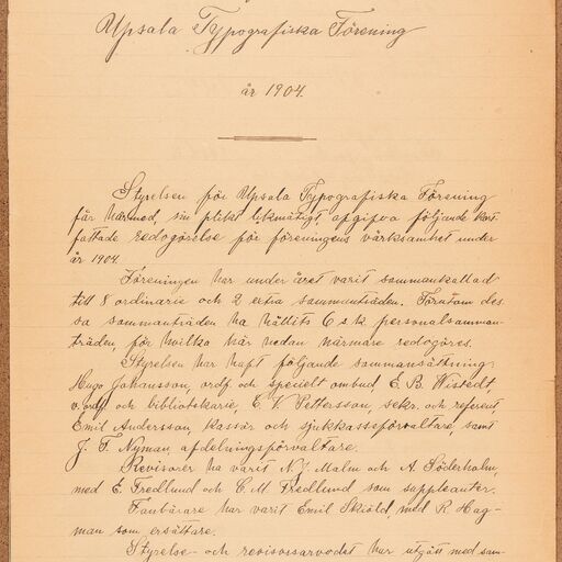 Typografförbundet avd 084/Uppsala Typografiska förening - annual report (1904)