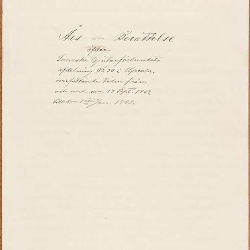 Berättelse öfver Landsorganisationens verksamhet för tiden från kongressen i Juli 1900 till Representantskaps-mötet i Mars 1901.