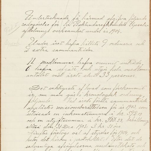 Bokbindareförbundet avd Uppsala - annual report (1904)