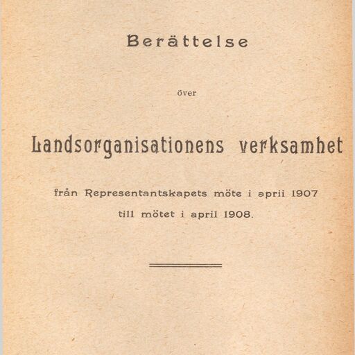 Berättelse över Landsorganisationens verksamhet från Representantskapets möte i april 1907 till mötet i april 1908
