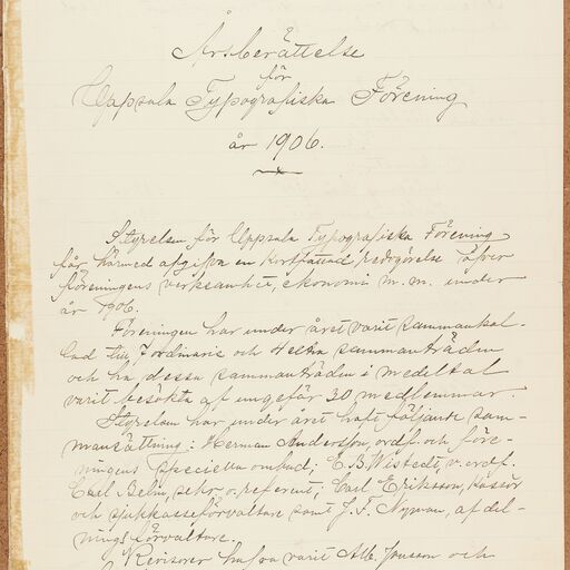 Typografförbundet avd 084/Uppsala Typografiska förening - annual report (1906)