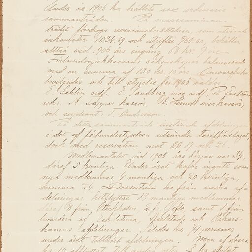 Gjutareförbundet avd 030 Uppsala - annual report (1906)