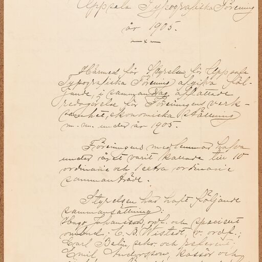 Typografförbundet avd 084/Uppsala Typografiska förening - annual report (1905)