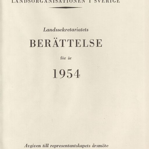 Svenska Lantarbetareförbundet Verksamhetsberättelse 1954