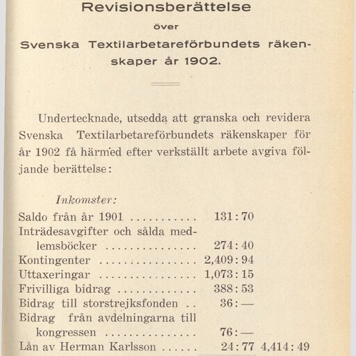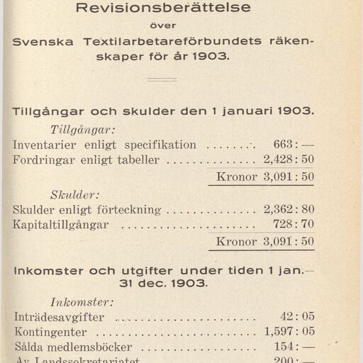 The Swedish Textile Workers' Union was formed at a constituent meeting on 9 April 1898. One of the union's leading figures was Gustav Janzén, who represented the Stockholm branch and was elected to the union leadership at the 1904 congress. In 1972, it merged with Svenska Sko- och läderarbetareförbundet (the Shoe and Leather Workers' Union) and Svenska beklädnadsarbetareförbundet (the Swedish Clothing Workers' Union) to form the Clothing Workers' Union (Beklädnadsarbetarnas förbund).